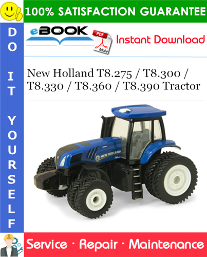 This is the COMPLETE Service Repair Manual for the New Holland T8.275 / T8.300 / T8.330 / T8.360 / T8.390 Tractor. It contains deep information about maintaining, assembly, disassembly and servicing your New Holland Tractor.