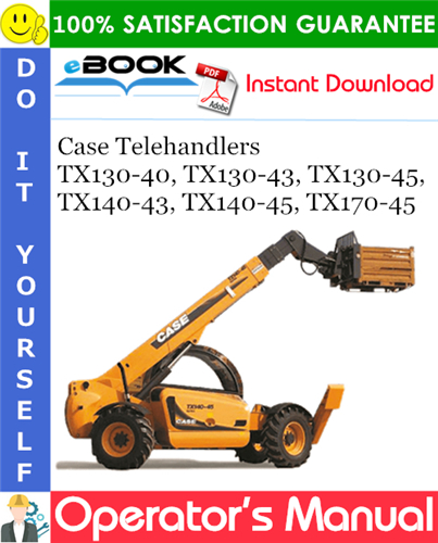 This is the COMPLETE Operators Manual for the Case TX130-40, TX130-43, TX130-45, TX140-43, TX140-45, TX170-45 Telehandlers.