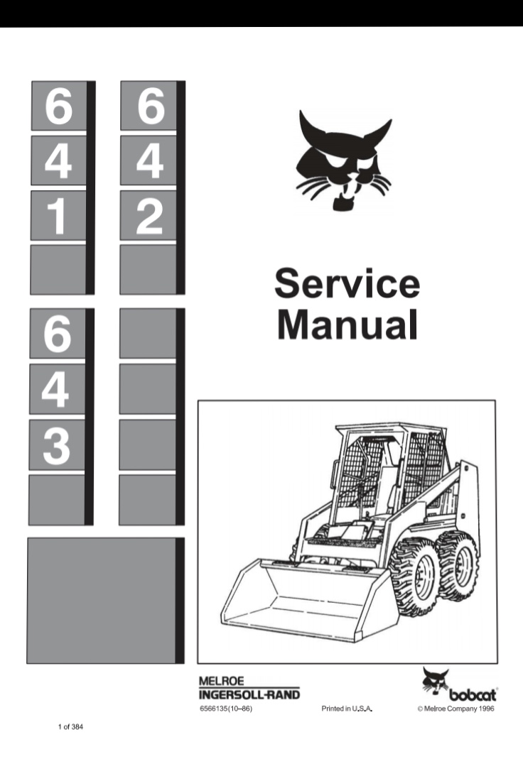 BOBCAT 641 642 643 SKID STEER LOADER SERVICE MANUAL