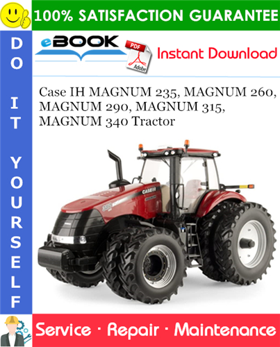 This is the COMPLETE Service Repair Manual for the Case IH MAGNUM 235, MAGNUM 260, MAGNUM 290, MAGNUM 315, MAGNUM 340 Tractor. It contains deep information about maintaining, assembly, disassembly and servicing your Case IH Tractor.