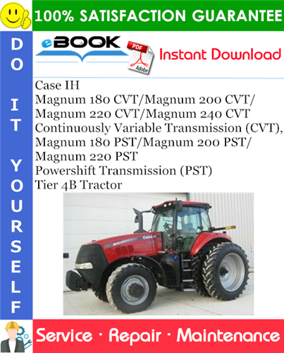 This is the COMPLETE Service Repair Manual for the Case IH Magnum 180 CVT / Magnum 200 CVT / Magnum 220 CVT / Magnum 240 CVT Continuously Variable Transmission (CVT), Magnum 180 PST / Magnum 200 PST / Magnum 220 PST Powershift Transmission (PST) - Tier 4B Tractor. It contains deep information about maintaining, assembly, disassembly and servicing your Case IH Tractor.
