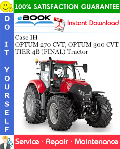 This is the COMPLETE Service Repair Manual for the Case IH OPTUM 270 CVT, OPTUM 300 CVT TIER 4B (FINAL) Tractor. It contains deep information about maintaining, assembly, disassembly and servicing your Case IH Tractor.
