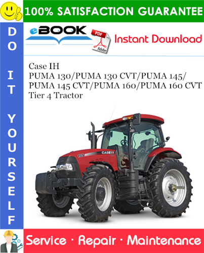 This is the COMPLETE Service Repair Manual for the Case IH PUMA 130 / PUMA 130 CVT / PUMA 145 / PUMA 145 CVT / PUMA 160 / PUMA 160 CVT - Tier 4 Tractor. It contains deep information about maintaining, assembly, disassembly and servicing your Case IH Tractor.