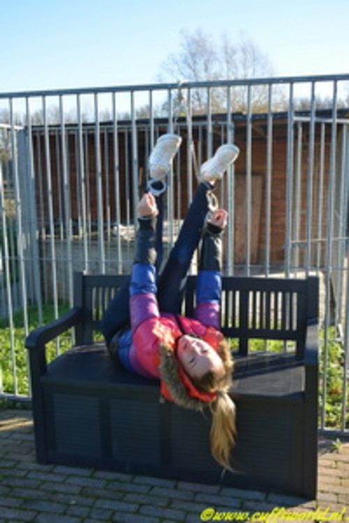 a nice shiny winterjacket and take her outdoors together with several cuffs.