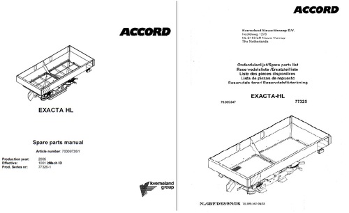 Factory Accord Exacta HL Fertilizer Spreader Parts manual will give you next useful information: