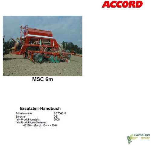 Accord MSC 6m Parts Manual Catalog for Seed Drill