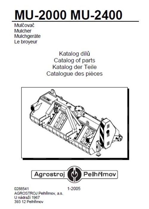 Agrostroj Pelhrimov MU 2000 2400 Parts Catalog for Mulcher