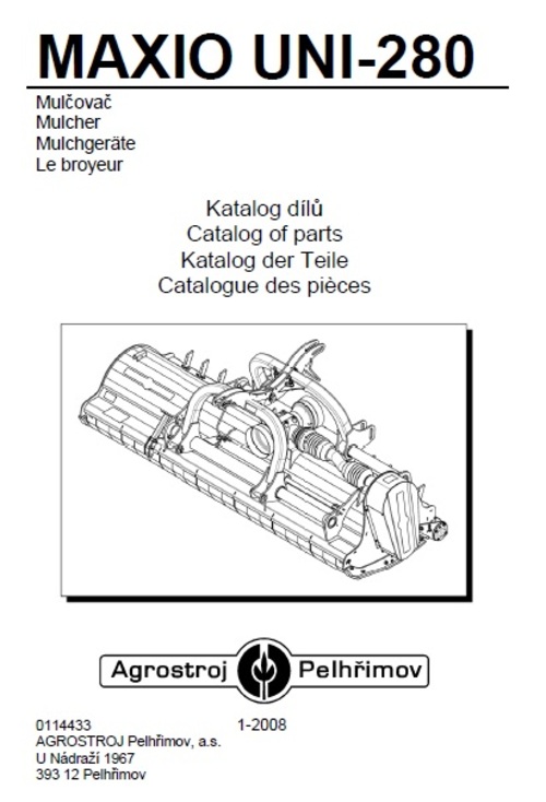 Agrostroj Pelhrimov Maxio Uni 280 Parts Catalog for Mulcher