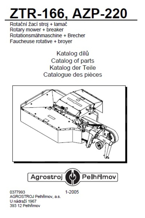 Agrostroj Pelhrimov ZTR 166 AZP 220 Parts Catalog for Mower