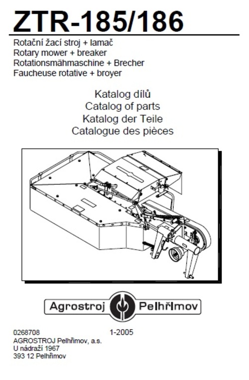 Agrostroj Pelhrimov ZTR 185 186 Parts Catalog for Mower