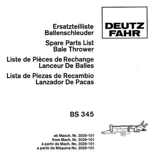 Factory Deutz Fahr Baler BS 345 Spare Parts manual will give you next useful information: