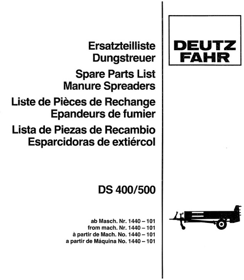 Factory Deutz Fahr DS400 DS500 Spare Parts manual will give you next useful information: