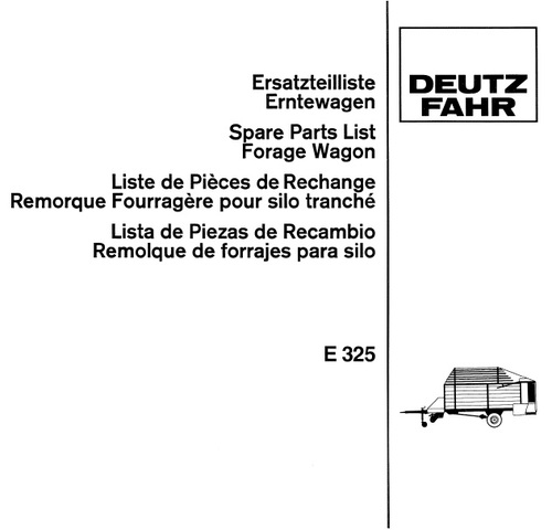 Factory Deutz Fahr E325 Spare Parts manual will give you next useful information: