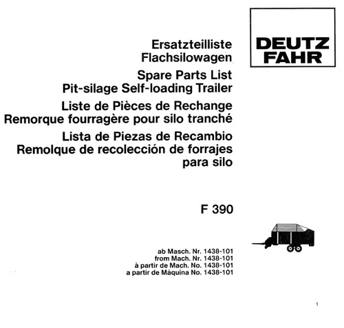 Factory Deutz Fahr F390 Spare Parts manual will give you next useful information: