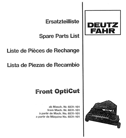 Factory Deutz Fahr Front Opticut Spare Parts manual will give you next useful information: