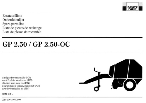 Deutz Fahr GP2.50 Spare Parts Catalog Manual for Baler