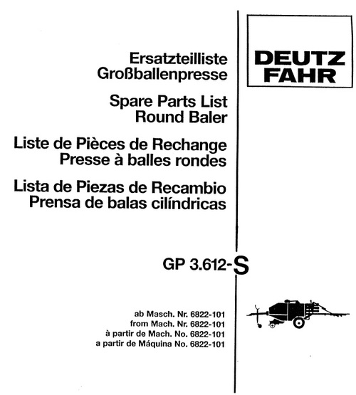 Factory Deutz Fahr GP3.612s Spare Parts manual will give you next useful information: