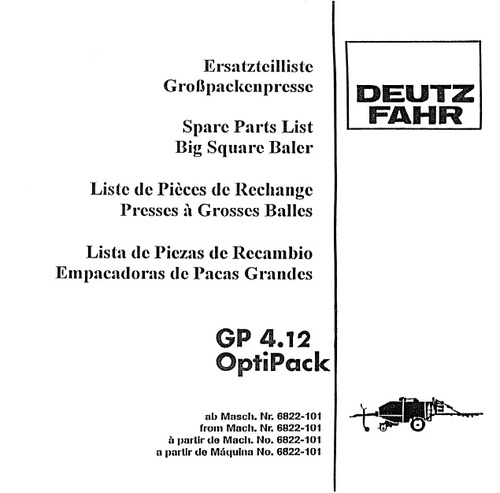 Deutz Fahr GP4.12 Spare Parts Catalog Manual for Big Square