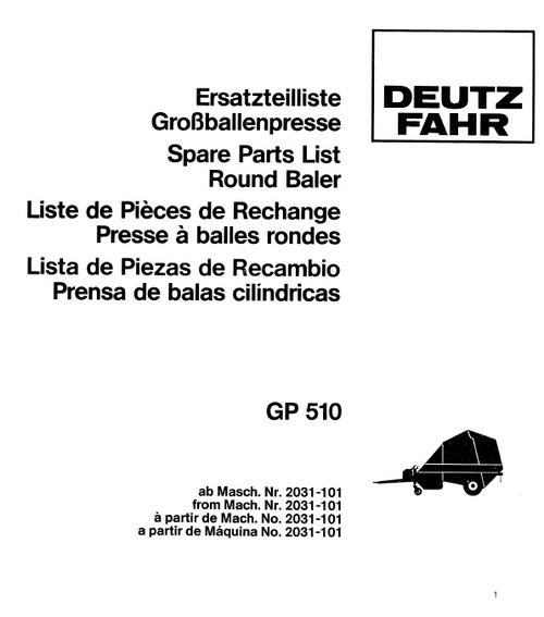 Deutz Fahr GP510 Spare Parts Catalog Manual for Round Baler