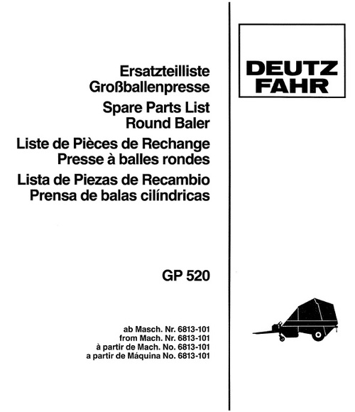Deutz Fahr GP520 Spare Parts Catalog Manual for Round Baler