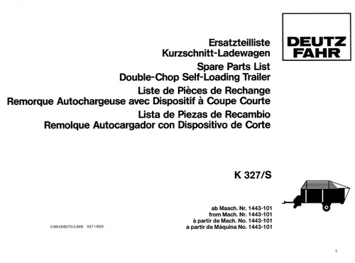 Deutz Fahr K327 Spare Parts Catalog for Double Chop Self-Loa