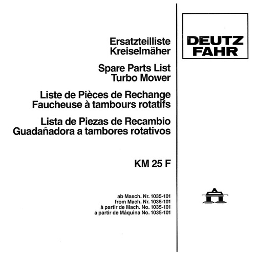 Deutz Fahr KM25 F Spare Parts Catalog Manual for Turbo Mower