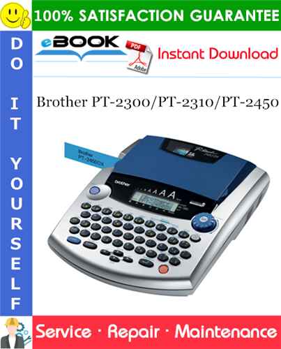 The Service Manual contains detailed information, has specs, diagrams, and actual real photo illustrations, and schemes, which give you complete step-by-step operations on repair, Diagnosing, servicing, technical maintenance & troubleshooting procedures for your Brother PT-2300/PT-2310/PT-2450. this manual offers full information you need for repair your Brother PT-2300/PT-2310/PT-2450. the information in this manual will enable you to find trouble and to understand how to repair and maintain your machine without going into service. YOU CAN DO THE REPAIRS YOURSELF AND SAVE MONEY $$$