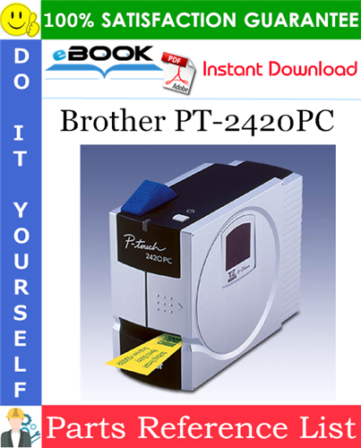 This is the COMPLETE Parts Reference List for the Brother PT-2420PC. Designed for the repair shops and individuals when ordering parts for their Brother PT-2420PC. This Manual describes and illustrates assemblies, subassemblies, and detail parts needed for service replacement. it Covers every part of your Brother PT-2420PC inside and out. Tons of pictures and diagrams at your fingertips!