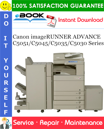 This is the COMPLETE Service Repair Manual for the Canon imageRUNNER ADVANCE C5051/C5045/C5035/C5030 Series. It contains deep information about maintaining, assembly, disassembly and servicing your Canon imageRUNNER ADVANCE C5051/C5045/C5035/C5030 Series. It also includes the Parts Catalog manual which describes and illustrates assemblies, subassemblies, and detail parts needed for service replacement.