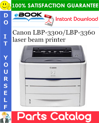 This is the COMPLETE Parts Catalog Manual for the Canon LBP-3300/LBP-3360 laser beam printer. Designed for the repair shops and individuals when ordering parts for their Canon LBP-3300/LBP-3360 laser beam printer. This Manual describes and illustrates assemblies, subassemblies, and detail parts needed for service replacement. it Covers every part of your Canon LBP-3300/LBP-3360 laser beam printer inside and out. Tons of pictures and diagrams at your fingertips!