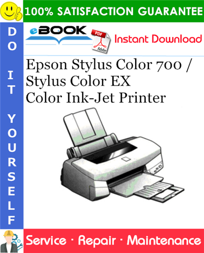 The Service Manual contains detailed information, has specs, diagrams, and actual real photo illustrations, and schemes, which give you complete step-by-step operations on repair, Diagnosing, servicing, technical maintenance & troubleshooting procedures for your Epson Stylus Color 700 / Stylus Color EX Color Ink-Jet Printer. this manual offers full information you need for repair your Epson Stylus Color 700 / Stylus Color EX Color Ink-Jet Printer. the information in this manual will enable you to find trouble and to understand how to repair and maintain your machine without going into service. YOU CAN DO THE REPAIRS YOURSELF AND SAVE MONEY $$$