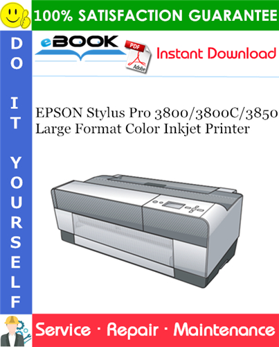 This is the COMPLETE Service Repair Manual for the EPSON Stylus Pro 3800/3800C/3850 Large Format Color Inkjet Printer. It contains deep information about maintaining, assembly, disassembly and servicing your EPSON Stylus Pro 3800/3800C/3850 Large Format Color Inkjet Printer.