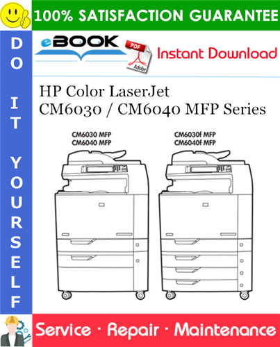 This is the COMPLETE Service Repair Manual for the HP Color LaserJet CM6030 / CM6040 MFP Series. It contains deep information about maintaining, assembly, disassembly and servicing your HP Color LaserJet CM6030 / CM6040 MFP Series.