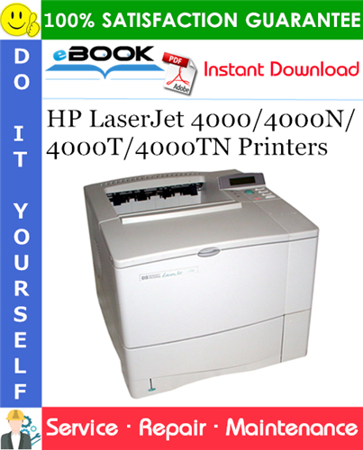 This is the COMPLETE Service Repair Manual for the HP LaserJet 4000/4000N/4000T/4000TN Printers. It contains deep information about maintaining, assembly, disassembly and servicing your HP LaserJet 4000/4000N/4000T/4000TN Printers.