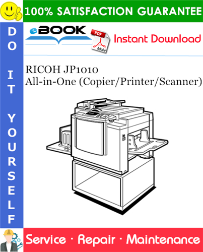 This is the COMPLETE Service Repair Manual for the RICOH JP1010 All-in-One (Copier/Printer/Scanner). It contains deep information about maintaining, assembly, disassembly and servicing your RICOH JP1010 All-in-One (Copier/Printer/Scanner). It also includes the Parts Catalog manual which describes and illustrates assemblies, subassemblies, and detail parts needed for service replacement.