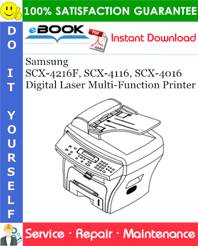 This is the COMPLETE Service Repair Manual for the Samsung SCX-4216F, SCX-4116, SCX-4016 Digital Laser Multi-Function Printer. It contains deep information about maintaining, assembly, disassembly and servicing your Samsung Digital Laser Multi-Function Printer.