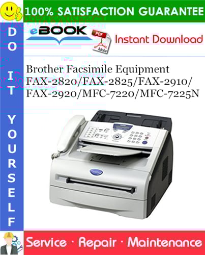 This is the COMPLETE Service Repair Manual for the Brother Facsimile Equipment FAX-2820/FAX-2825/FAX-2910/FAX-2920/MFC-7220/MFC-7225N. It contains deep information about maintaining, assembly, disassembly and servicing your Brother Facsimile Equipment.
