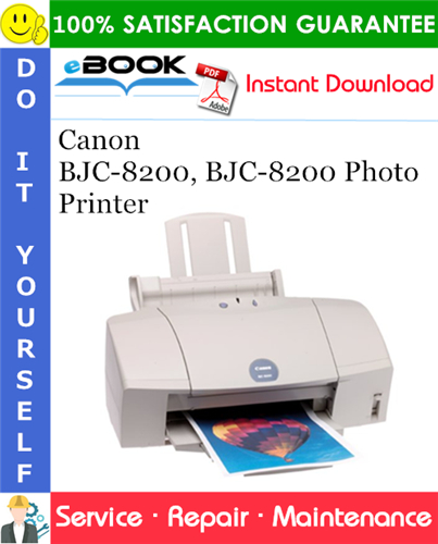The Service Manual contains detailed information, has specs, diagrams, and actual real photo illustrations, and schemes, which give you complete step-by-step operations on repair, Diagnosing, servicing, technical maintenance & troubleshooting procedures for your Canon BJC-8200, BJC-8200 Photo Printer. this manual offers full information you need for repair your Canon BJC-8200, BJC-8200 Photo Printer. the information in this manual will enable you to find trouble and to understand how to repair and maintain your machine without going into service. YOU CAN DO THE REPAIRS YOURSELF AND SAVE MONEY $$$