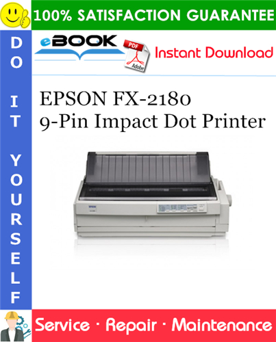 This is the COMPLETE Service Repair Manual for the EPSON FX-2180 9-Pin Impact Dot Printer. It contains deep information about maintaining, assembly, disassembly and servicing your EPSON FX-2180 9-Pin Impact Dot Printer.