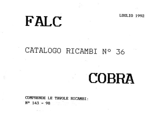 Falc Cobra 1600 Spare Parts Catalog Manual