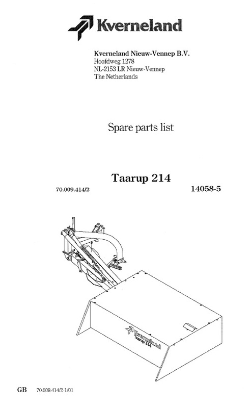 Taarup 214 Spare Parts Manual for Mower