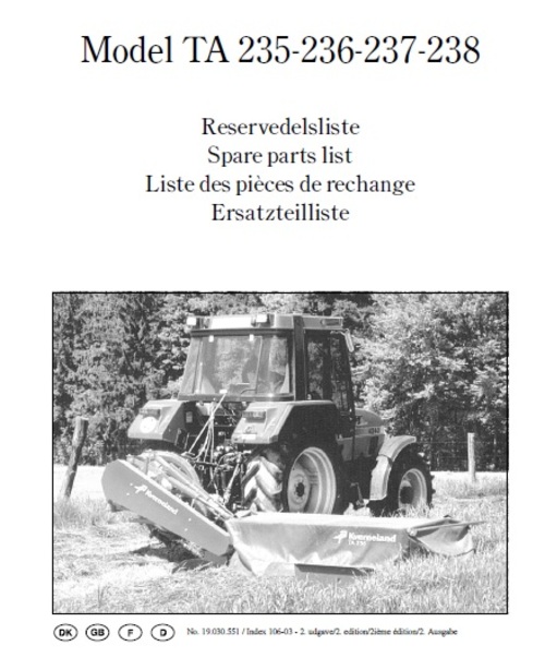 Taarup 235 236 237 238 Spare Parts Manual for Mower