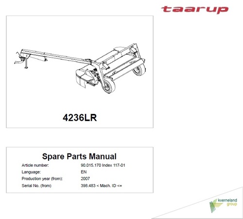Taarup 4236LR Spare Parts manual is very detailed and contains quality information about repair, maintain, rebuild, refurbish or restore. Most of the detailed pictures is given for do it your self mechanics and those performing repairs and maintenance procedures.