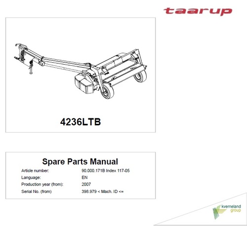 Taarup 4236LTB Spare Parts manual is very detailed and contains quality information about repair, maintain, rebuild, refurbish or restore. Most of the detailed pictures is given for do it your self mechanics and those performing repairs and maintenance procedures.
