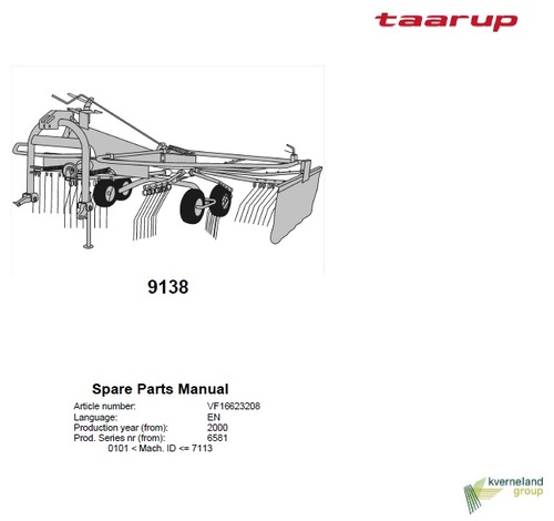 Taarup 9138 Spare Parts List for Rakes and tedders
