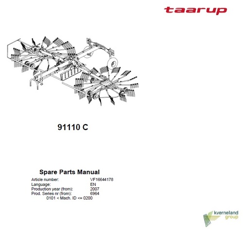 Factory Taarup 91110C Spare Parts manual will give you next useful information: