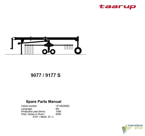 Factory Taarup 9077 9177 Spare Parts manual will give you next useful information: