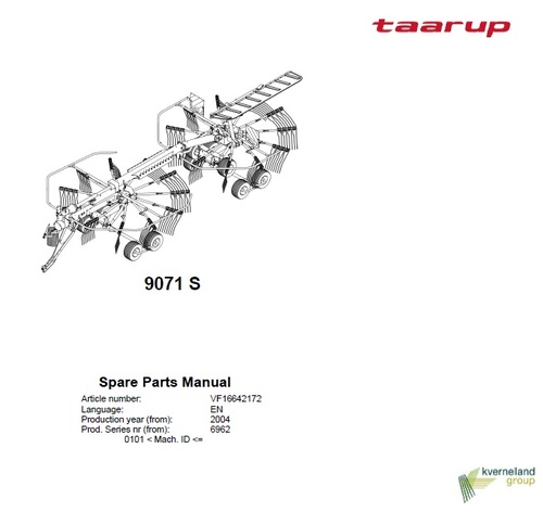 Factory Taarup 9071S Spare Parts manual will give you next useful information: