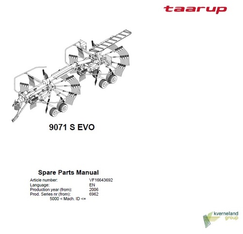 Factory Taarup 9071S Evo Spare Parts manual will give you next useful information: