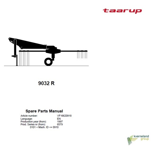 Taarup 9032R Spare Parts List for Rakes and tedders